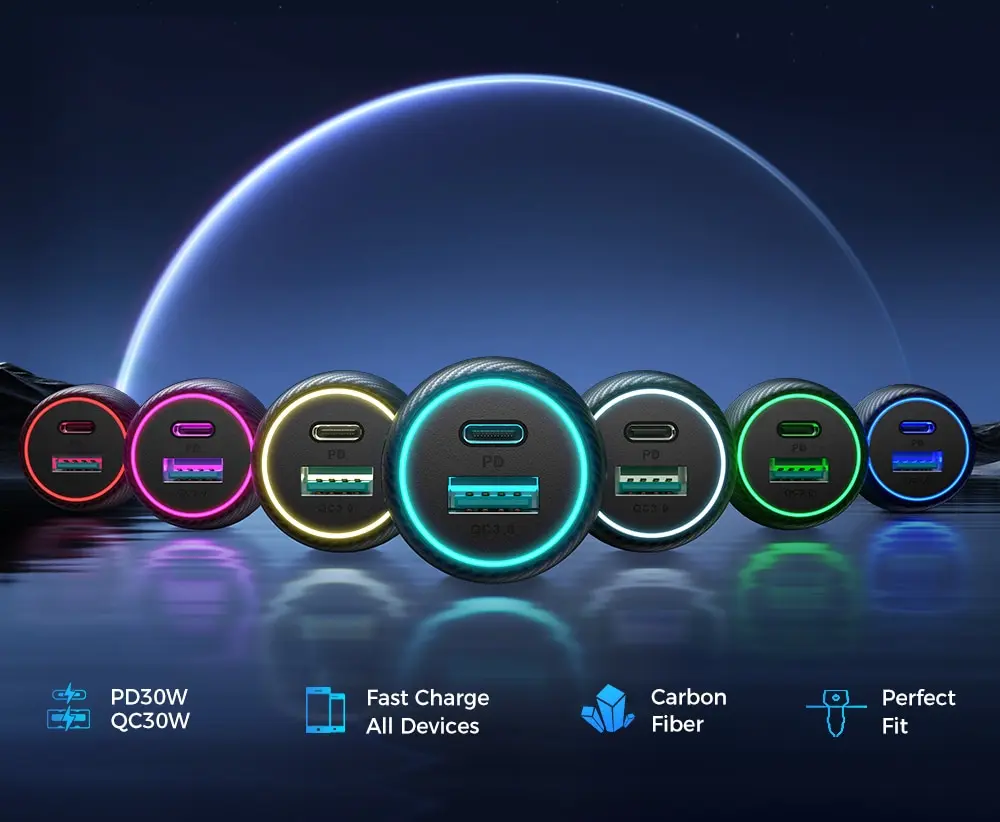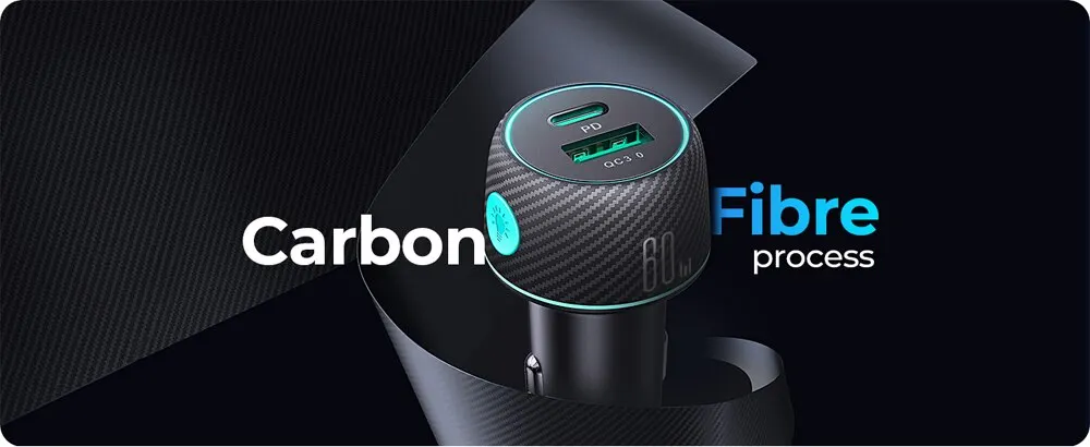 PD 30W / QC 30W/Charge rapide tous les appareils/Fibre de carbone/Ajustement parfait